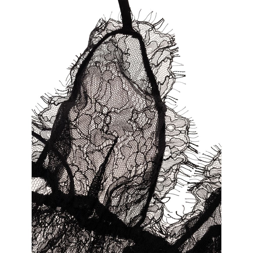 Triangeltop van kant, elastisch koord en schouderbandjes, open voorkant.